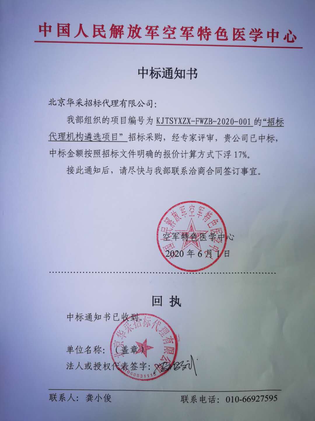 北京華采招標代理有限公司成功入圍中國人民解放軍空軍特色醫學中心招標代理機構